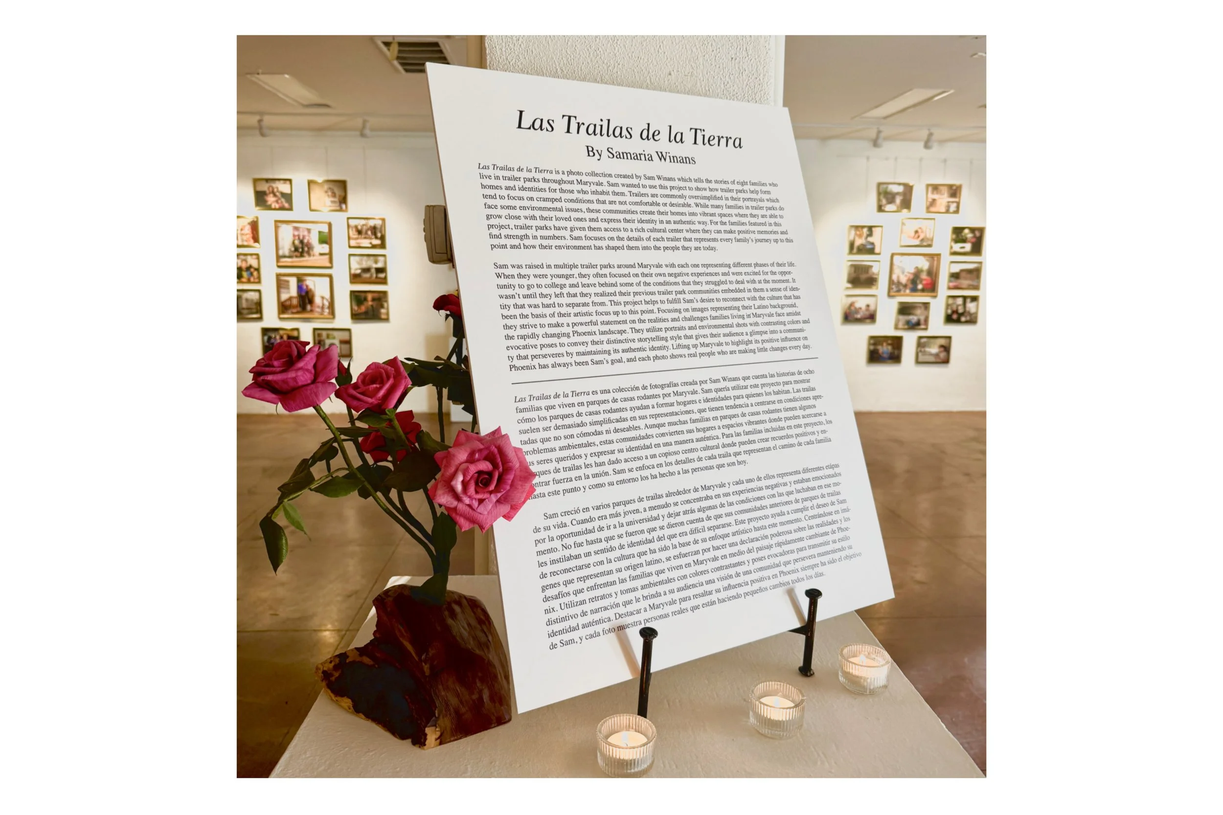 “Las Trailas de la Tierra is a photo collection created by Sam Winans which tells the stories of eight families who live in trailer parks throughout Maryvale. Sam wanted to use this project to show how trailer parks help form homes and identities for those who inhabit them. Trailers are commonly oversimplified in their portrayals which tend to focus on cramped conditions that are not comfortable or desirable. While many families in trailer parks do face some environmental issues, these communities create their homes into vibrant spaces where they are able to grow close with their loved ones and express their identity in an authentic way. For the families featured in this project, trailer parks have given them access to a rich cultural center where they can make positive memories and find strength in numbers. Sam focuses on the details of each trailer that represents every family's joumey up to this point and how their environment has shaped them into the people they are today.”