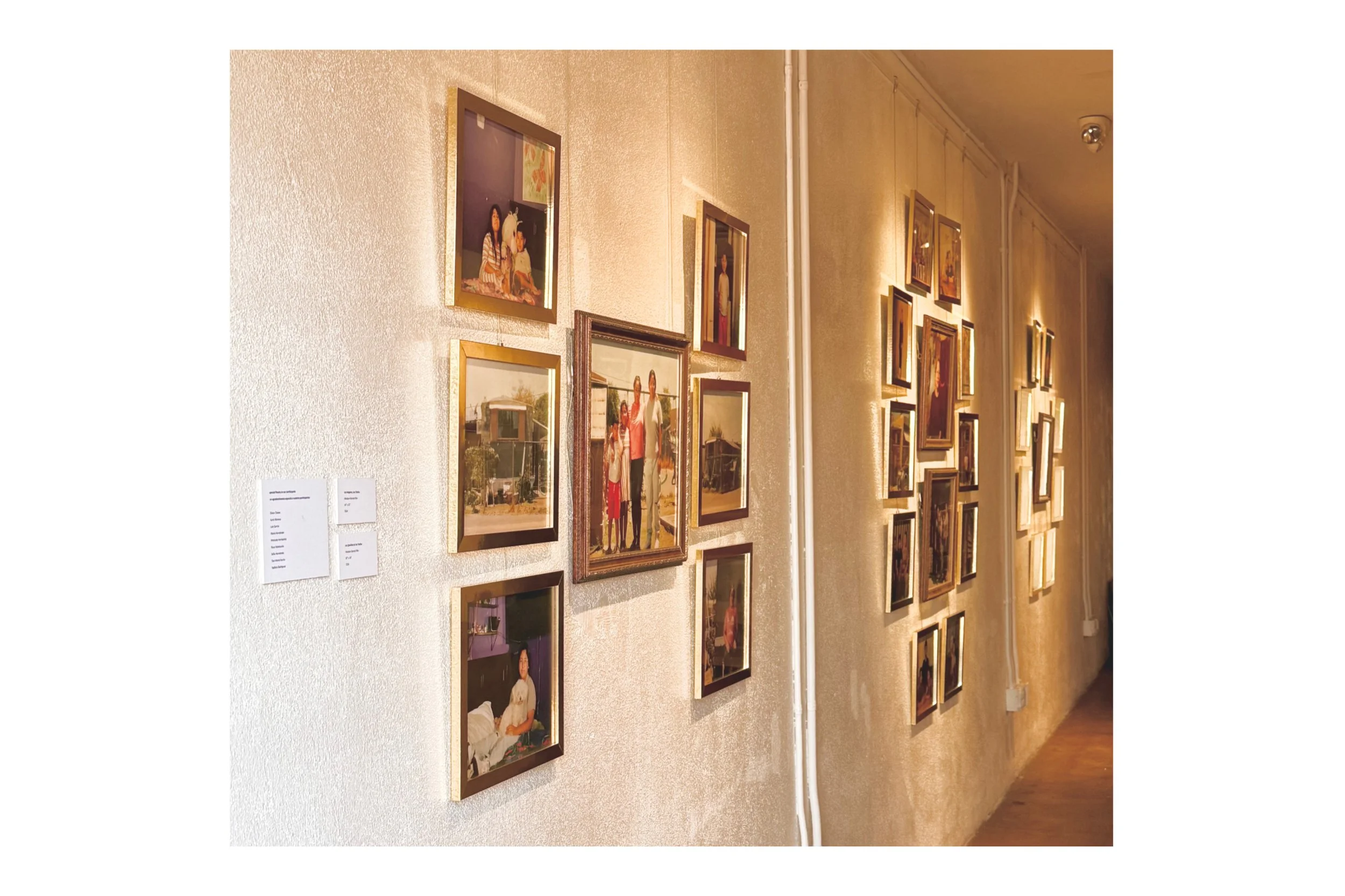 All the photos for the exhibition were printed on a type of fabric material, and to highlight the aesthetic of the home videos and the nostalgia of growing up in the early 2000s, the video is shown on a CRTV.